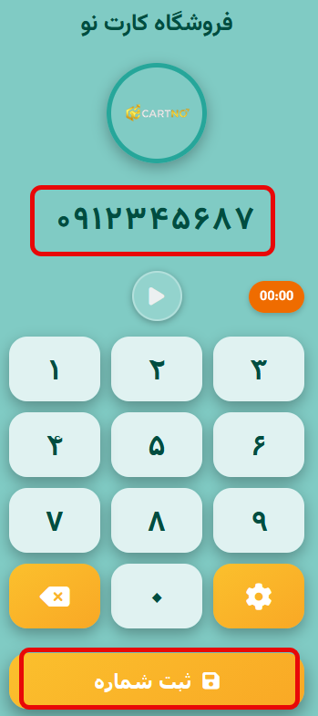 مشتری باید شماره موبایل خود را وارد کند و سپس روی دکمه ثبت شماره کلیک نماید. با این کار، شماره مشتری بهصورت خودکار در دفترچه تلفن پیش فرض نرمافزار ذخیره خواهد شد و آماده ارسال پیامک خوشآمدگویی می باشد.